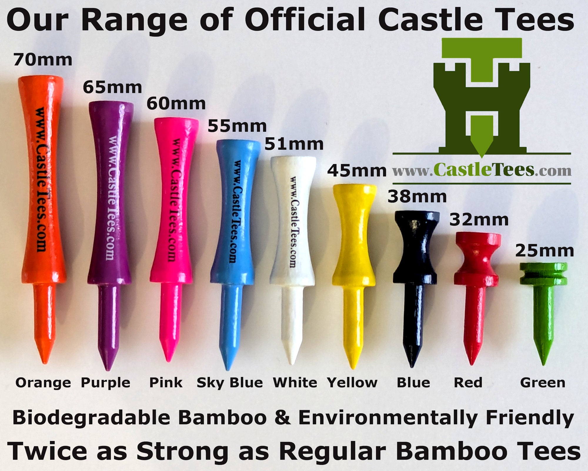 3. ⛳ ✔️ Castle Tees are made exclusively from Moso bamboo which is TWICE as strong as the average bamboo species, has a higher tensile strength than steel and is more than FOUR times stronger than hardwood, meaning they last longer than most Tees and do not break easily! Castle Tees premium bamboo golf Tees are very strong, very durable and biodegradable, making them a more environmentally friendly alternative to plastic and hardwood Tees.