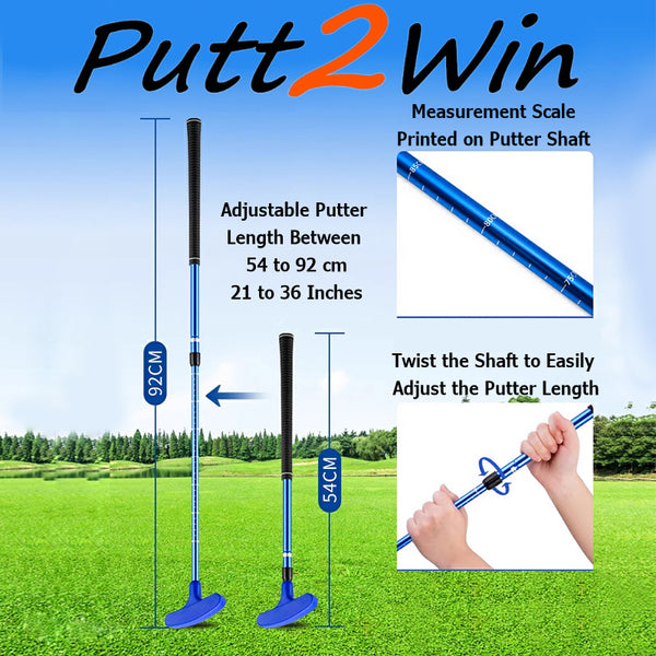 Putt2Win Adjustable Golf Putter - Junior Golf Putter with an Extendable Shaft For Kids & Adults Mini Golf & Putting Games Right or Left Handed